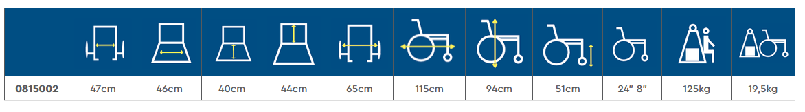 -Súly: 19,5 kg (Lábtartókkal és hátsó kerekekkel. A lábtartók és hátsó kerekek nélküli kerekesszék súlya 13 kg.)