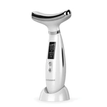 uTermékleírás: /u A készülék mikrovibrációs funkció, LED fotonterápia, hidegterápia és EMS alkalmazásával arcbőrét üdébbé varázsolhatja, továbbá hozzájárulhat a megereszkedett bőr feszesebbé tételéhez, a ráncok mélységének csökkentéséhez és kialakulásuknak megelőzéséhez, a bőrmegújulás elősegítéséhez és a kollagéntermelés serkentéséhez is. Alkalmazhatja arcán és nyakán egyaránt. Méretéből és akkumulátoros kialakításából adódóan könnyedén hordozható, így otthonában, kényelmesen a kanapén ülve vagy utazás közben használhatja. A készülék ergonomikus és áramvonalas kialakítása pedig kényelmes és biztonságos fogást biztosít a kezelések során. u5 szépségápoló funkció a fiatalos és üde hatású bőrért:/u - EMS technológia (elektromos idegstimuláció) – kollagéntermelés serkentése, bőrmegújítás - Masszázs funkció melegítéssel - pórustisztítás, vitalizálás - Fény- és színterápia - sejtaktivitás stimulálása 4 színnel - Mikrovibrációs funkció – mélytisztítás, salakanyag eltávolítás - Hidegterápia - bőrnyugtatás, a vízmegtartó képesség fokozása u6 féle kezelési mód:/u - Masszázs mód- pórustisztítás és rugalmasság fokozása - Keringésfokozó mód - aktiválás és bőrmegújítás elősegítése - Bőrfeszesítés ás fokozott hatóanyag bevitel mód - Ránctalanító hatású mód - bőrmegújítás és regeneráció természetes folyamatainak serkentése - EMS mód (galván ionok)- mikroáram használatával a feszesebb bőrért - Arcvasaló mód hideg felülettel (~5-16 Co) - frissítés és nyugtatás, vízmegtartás fokozása uLegfontosabb termékjellemzők:/u - Arc és nyakvonalhoz igazodó íves kialakítás - Ergonomikus "delfinfarok" forma - 4 intenzitásfokozat - Praktikus tartóállvány - Vezeték nélküli használat, akkumulátoros kivitel - Ajánlott kezelési idő/alkalom: 2-5 perc uMűszaki adatok:/u - Maximális teljesítmény: 2,5 W - Akkumulátor kapacitása: 700 mAh - Rezgésfrekvencia: max. 7000 RPM - Kezelőfej hőmérséklete: 6-42 Co (+/- 5Co)között - Kezelőfelület anyaga: rozsdamentes acél - Tartozék USB-C típusú töltőkábellel (adapter nem tartozék)