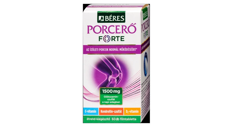 -Béres Porcerő Forte filmtabletta komplex étrend-kiegészítő készítmény glükózamin-szulfáttal, kondroitin-szulfáttal, valamint C- és D3-vitaminnal