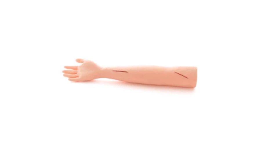 uTermékleírás /u Sebvarró oktatókar A HeineScientific sebvarró oktatókar egy élethű, valódi méretű anatómiai modell, amelyet speciális műbőr borít. A modell lehetővé teszi a sebvarrási és csomózási technikák gyakorlását valósághű körülmények között. A bőrfelület alatt kemény habból készült alap található, a műbőr pedig speciális PVC anyagból készült, amely tapintásra és viselkedésre is nagyon hasonlít az emberi bőrhöz varrás közben. A precíz öntési technológiának köszönhetően a körömágyak, a tenyérvonalak és más finom részletek is jól láthatók. Az emberi kar természetes dőlésszöge, a csukló formája, valamint az erek lefutása is élethűen megjelenik. A hagyományos sebvarró párnákkal, blokkokkal vagy anyagdarabokkal szemben ez az oktatókar sokkal valósághűbb gyakorlási élményt biztosít. A modell előre bevágott sebekkel érkezik, amelyek többszörösen varrhatók, tűzhetők vagy kapcsozhatók. Szükség esetén új metszések is ejthetők rajta. A könnyebb tárolás és szállítás érdekében az oktatókar tartós hordtáskában érkezik, amelyben helyet kapnak a varróeszközök is. uTermékjellemzők/u - HeineScientific sebvarró oktatókar - Valódi méretű anatómiai kar modell - Műbőr felület, amely rendkívül hasonlít a természetes bőrre - Előre bevágott sebek, amelyek többszörösen varrhatók - További sebek is ejthetők igény szerint - Valódi méret: kb. 62 cm hosszú Hordtáskában szállítva, tárolóhellyel a varróeszközök számára A valósághű forma, valamint a szövet- és bőrhatású anyagok kombinációja rendkívül élethű gyakorlási környezetet biztosít, kiváló ár-érték arány mellett.