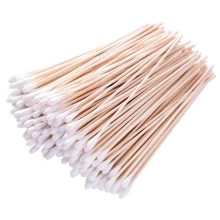 Termék jellemzői: - nem steril - 15 cm hosszú pálca egyik végén fehérített pamutból készített vattatamponnal – fa nyél vékony vattafejjel - az Áár 100 db-ra vonatkozik, amely 1 csomag termék