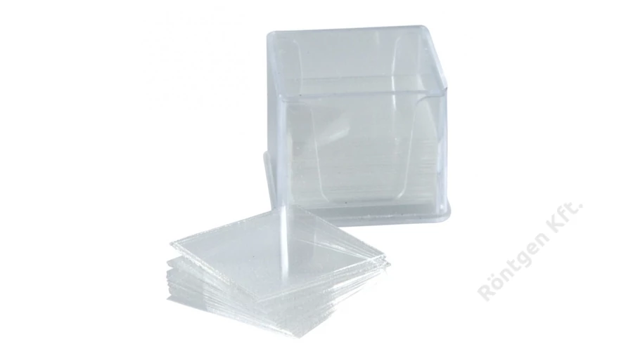-Fedőlemez 0,15 mm vastagságú üvegből, zárható dobozban
