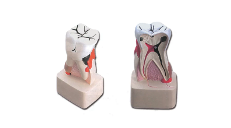 uTermékleírás: /u Ez a négyszeres nagyítású oktatási modell szemléletesen mutatja be a fogszuvasodás (caries) kialakulását és előrehaladását. A modell részletesen ábrázolja a fogat felépítő szöveteket – a zománcot, a dentint és a pulpát – és bemutatja, hogyan érinti őket a szuvasodás különböző stádiumokban. Ideális fogorvosi rendelők, egyetemi oktatás, betegoktatás és demonstráció céljára. strongFőbb jellemzők/strong - 4x nagyított fogmodell a caries folyamatának bemutatásához - Részletes ábrázolás: zománc, dentin, pulpa - A szuvasodás progressziójának jól látható szemléltetése - Tömör, stabil kialakítás strongMűszaki adatok/strong - Méret: 6 × 4,5 × 11 cm - Súly: kb. 100 g