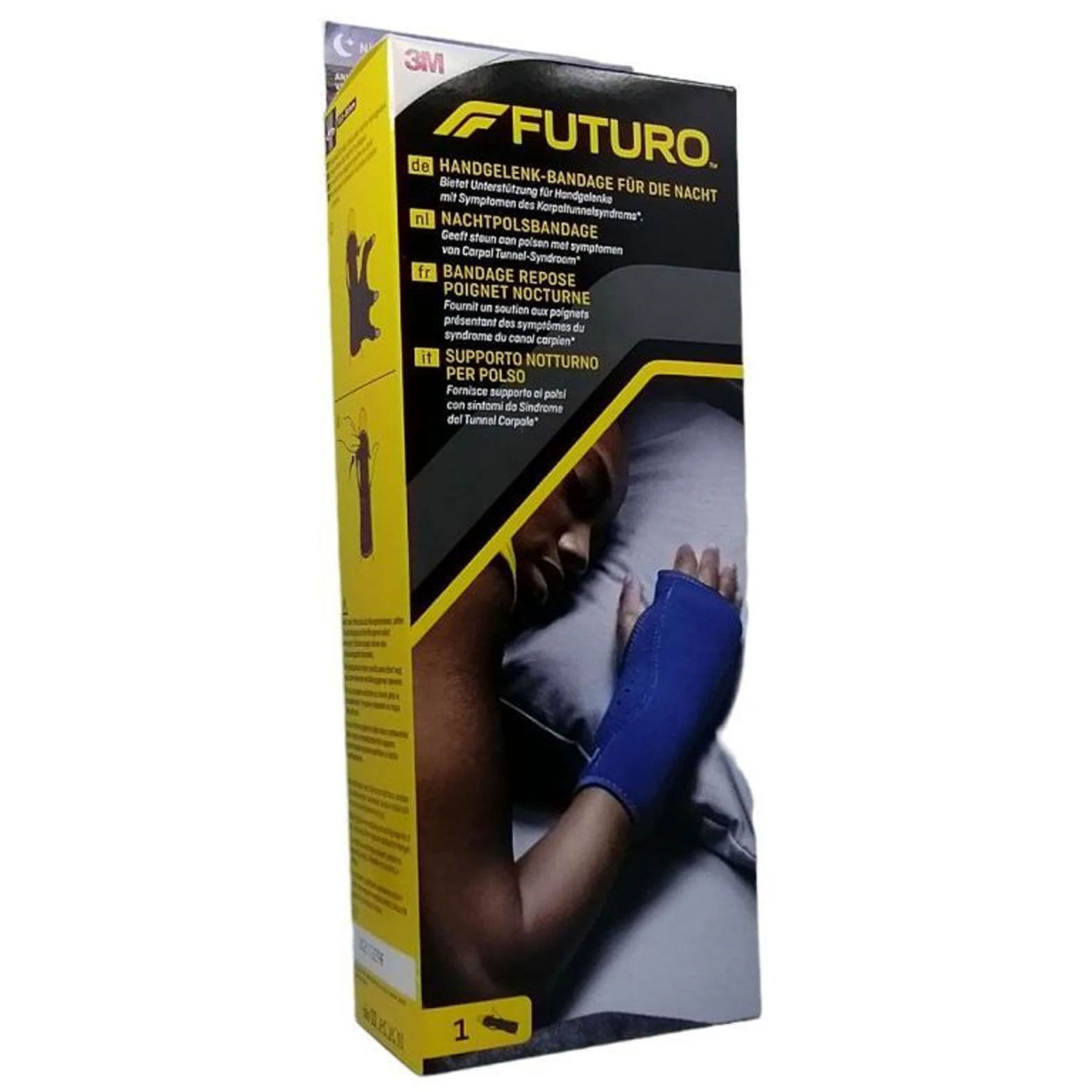 uTermékleírás: /u Ébredjen kipihenten a FUTURO™ Éjszakai Csuklórögzítővel, hogy szembe tudjon nézni a nap kihívásaival. Stabil fém sínnel a tenyérnél és párnázott belső résszel ideális kéztartást biztosít, így enyhíti a kéztő-alagú szindróma, a sérülés utáni és ínhüvelygyulladás fájdalmas tüneteit. Ez a tartós csuklórögzítő segít, hogy kényelmes és pihentő legyen az éjszaka, ezáltal nagyszerű legyen a reggel is! Speciális jellemzők: -Párnázott terapeutikus gömb a tenyérnél, állítható kivehető stabilizátor, légáteresztő, nedvességet elvezető puha anyag kényelmesen tartja a csuklót éjszaka. Alkalmazható: -kéztőalagút (Carpalis) szindróma, ínhüvelygyulladás, rándulás, ízületi gyulladás esetén éjszakai használatra Terméktípus: -Merevítéssel Termékjellemzők és termékelőnyök: -Mérsékelt, stabilizáló könnyebbség és védelem -Ötvözi az enyhe nyomást a tartással a párnázott gömbbel és az eltávolítható tenyér-sínnel -Állítható pántok az személyre szabott illeszkedésért és kényelemért -A bebújtatható kivitelezésnek köszönhetően könnyen és gyorsan felvehető -Jobb és bal csuklón egyaránt alkalmazható A következő méretekben kapható: -Állatható 13.3-22.9 cm Szín: -Sötétkék uAlkalmazás/u 1. Nyissa ki a rögzítőket. Csúsztassa a kezét a rögzítőbe, a fémsín a tenyér mentén helyezkedjen el. 2. Rögzítse a központi, majd a szomszédos rögzítőket. Úgy állítsa be a rögzítőket, hogy erős, de kényelmes tartást biztosítsanak. Helyezze el a kényelmes párnákat a tenyér mentén és az ujjak alatt, hogy biztosítsa a természetes kézhelyzetet. uHasználati utasítás/u Távolítsa el a fém-merevítőt és csatoljon össze minden csatot és tépőzárat mosás előtt. Kézzel mosható meleg (nem forró) szappanos vízben. Csavarja ki jól és hagyja megszáradni. NE mossa mosógépben, NE szárítsa szárítógépben, NE használjon vegyszert, fehérítőt vagy öblítőt a tisztításkor.