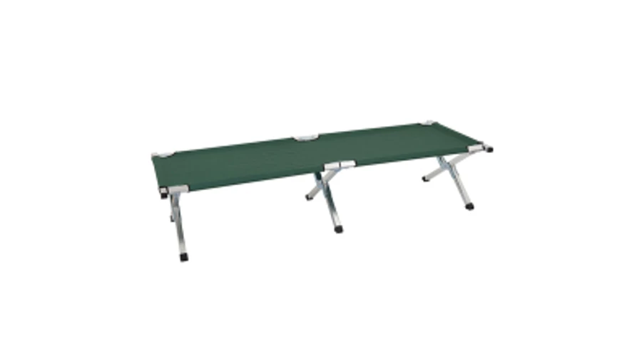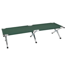 uTermékleírás: /u Összecsukható és könnyű tábori ágy, nagy szilárdságú alumíniumötvözetből és 600D poliészterből készült. Elsősorban katonai táborokban és harctéri környezetben használják. Hordtáskával szállítva. uMűszaki jellemzők/u - Kinyitott méret: 196 × 75 × 43 cm - Összecsukott méret: 95 × 20 × 11 cm - Súly: 6,4 kg - Teherbírás: 159 kg