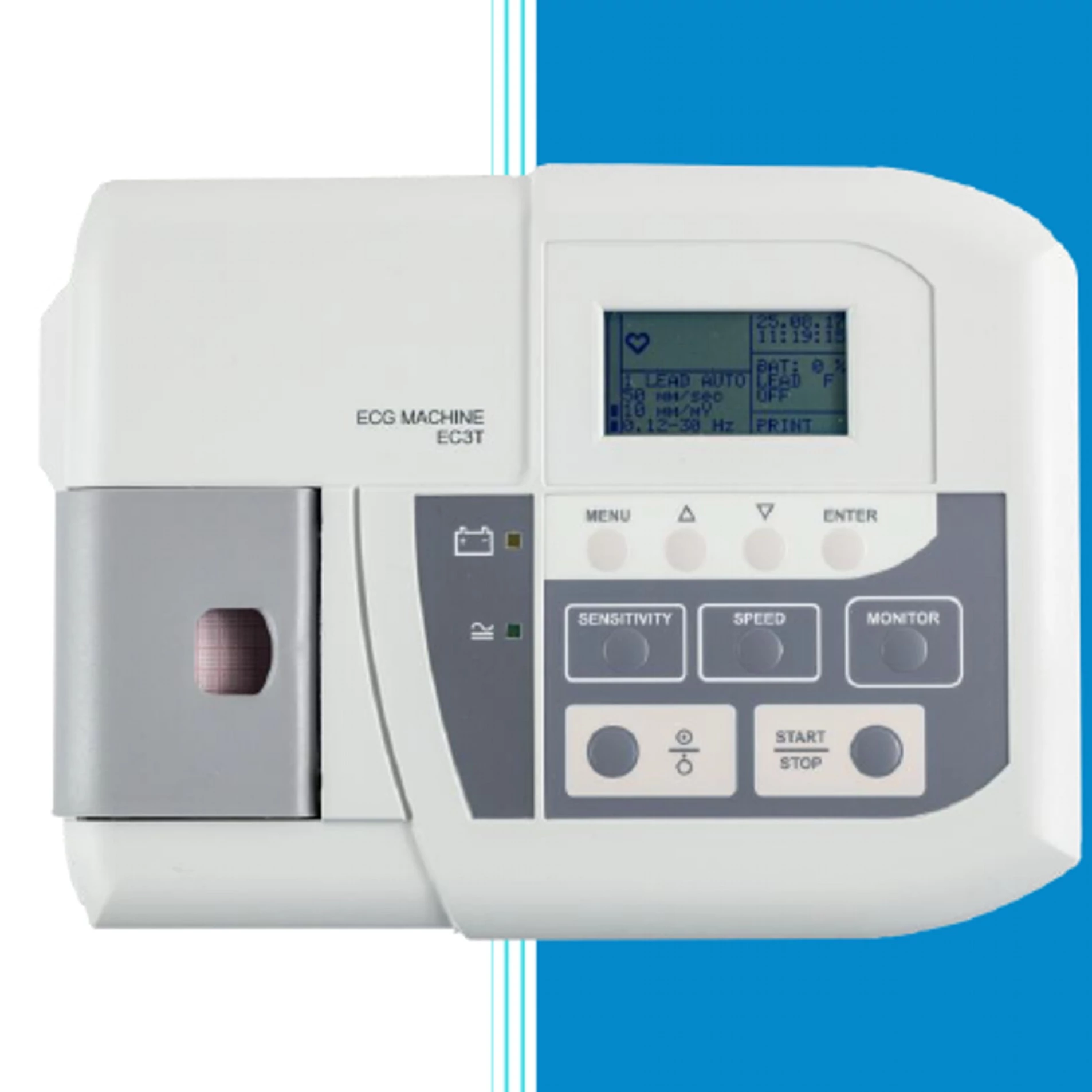- EKG regisztrátumkészítési módok Kézi, Automatikus, Auto Start üzemmód zajszűréssel, várakozás arrhythmia megjelenésre, időszakos EKG nyomtatás, legutolsó EKG másolat nyomtatás
