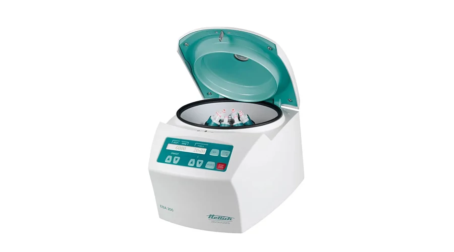 -a Hettich EBA 200 egy kis centrifuga, amely kompakt méreteinek és 8 csöves szögrotorral ellátott felszerelésének köszönhetően ideális kis mennyiségű minta feldolgozására
