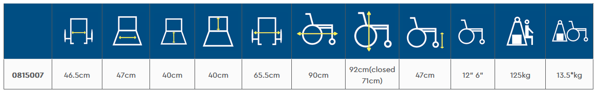 -Súly: 13.5 kg (Lábtartókkal. A lábtartó nélküli kerekesszék súlya 12 kg)