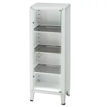 uTermékleírás: /u A VALUE egyszárnyú szekrény tartós, zománcozott acéllemezből készült, edzett üvegajtóval, amely biztonságos és könnyen tisztítható tárolási megoldást kínál egészségügyi és laboratóriumi környezetben. Átlátszó kialakítása megkönnyíti a tartalom gyors áttekintését. strongFőbb jellemzők/strong - Szerkezet: zománcozott acéllemez - Ajtó: edzett üveg, nyitható, zárral és kulccsal - Polcok: 3 db rozsdamentes acélpolc, magasságuk állítható strongemSzállítás: lapra szerelt kivitelben!/em/strong strongMűszaki adatok/strong - Méret: 52 × 35 × 138 cm - Csomag mérete: 65 × 26 × 134 cm - Súly: 31 kg