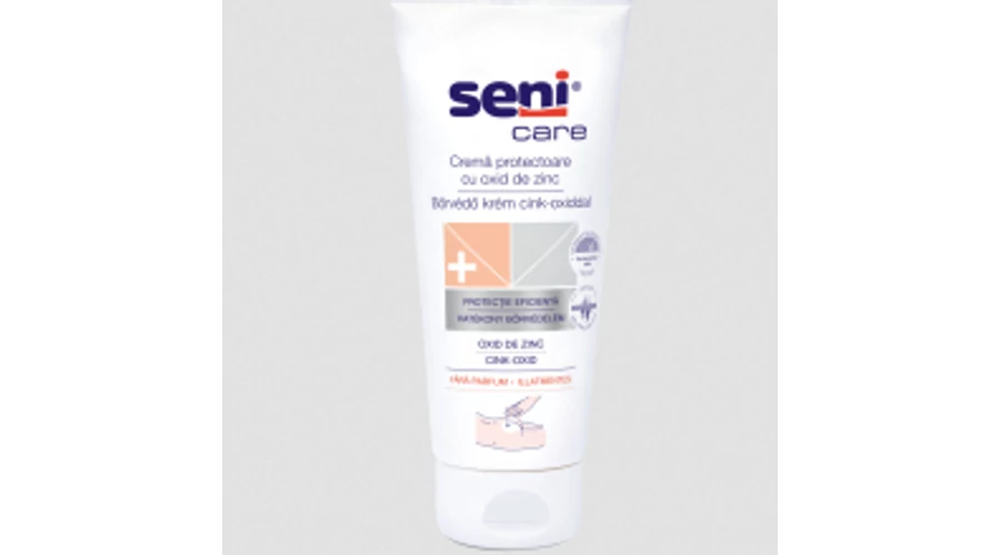 uTermékleírás:/u A Seni Care cink-oxid tartalmű bőrvédő krémjének használata minden pelenkacsere alkalmával javasolt, irritált, kipirosodott bőrfelületre. Védelmet nyújt a gyulladások, kidörzsölődések és felfekvések ellen. Az irritációnak kitett bőr ápolására. A krém védőréteget képez a bőrön. Az optimálisan kialakított cink-oxid-tartalom antibakteriális és fertőtlenítő hatású, és serkenti a bőr gyógyulási folyamatait is.