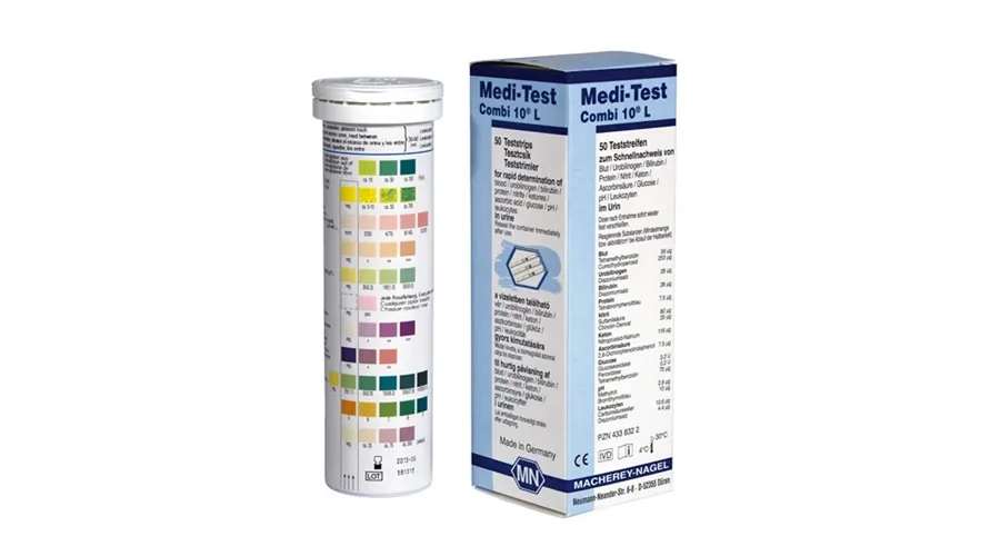 uTermékleírás: /u Medi-Test Combi 10L vizelet tesztcsíkok A Medi-Test Combi 10L vizelet tesztcsíkok gyors és pontos vizeletvizsgálatot tesznek lehetővé. Használatuk egyszerű, kialakításuknak köszönhetően kis mennyiségű minta esetén is könnyen alkalmazhatók. Az aszkorbinsav tesztmező kimutatja az aszkorbinsav jelenlétét a vizeletben, míg a többi tesztmező ellenáll az aszkorbinsav okozta interferenciának, így az érzékeny paramétereket általában nem szükséges újramérni még aszkorbinsav jelenléte esetén sem. uTermékjellemzők/u - Medi-Test Combi 10L vizelet tesztcsíkok - Mintatípus: friss vizelet (legfeljebb 2 órás) - Merítési idő: 1 másodperc - Kiértékelési idő: 30–60 másodperc - 1 csomag 50 db tesztcsíkot tartalmaz uVizsgálható paraméterek/u - Glükóz - Keton - Aszkorbinsav - Fehérje - Vér - Leukociták - Nitrit - pH - Bilirubin - Urobilinogén