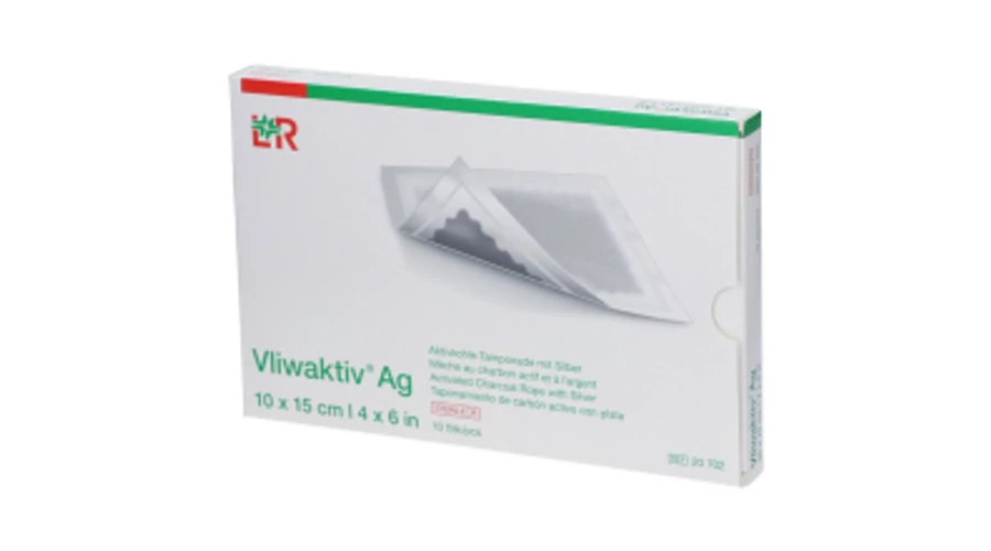 Termék jellemzői: -Nedvszívó aktív szén kötszer, ezüsttel bevonva -A Vliwaktiv Ag az aktív szén szagmegkötő tulajdonságait ötvözi az ezüst antimikrobiális hatásával -A termék alkalmas kritikusan kolonizált sebek, fertőzött és/vagy kellemetlen szagú sebek, valamint fokozott fertőzésveszélynek kitett sebek kezelésére Termékösszetétel -Ezüsttel és poliészterrel/polietilénnel impregnált aktív szénszálak -A nedvszívó kötszer ezenkívül a következőket is tartalmazza: polipropilén, cellulóz, olvadékragasztó (szintetikus polimer gyantákkal és viaszokkal)