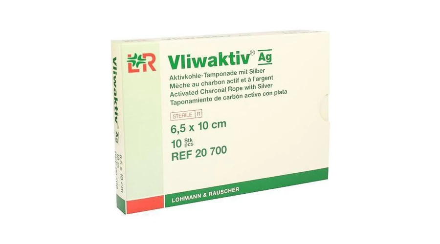 Termék jellemzői: -Nedvszívó aktív szén kötszer, ezüsttel bevonva -A Vliwaktiv Ag az aktív szén szagmegkötő tulajdonságait ötvözi az ezüst antimikrobiális hatásával -A termék alkalmas kritikusan kolonizált sebek, fertőzött és/vagy kellemetlen szagú sebek, valamint fokozott fertőzésveszélynek kitett sebek kezelésére Termékösszetétel -Ezüsttel és poliészterrel/polietilénnel impregnált aktív szénszálak -A nedvszívó kötszer ezenkívül a következőket is tartalmazza: polipropilén, cellulóz, olvadékragasztó (szintetikus polimer gyantákkal és viaszokkal)