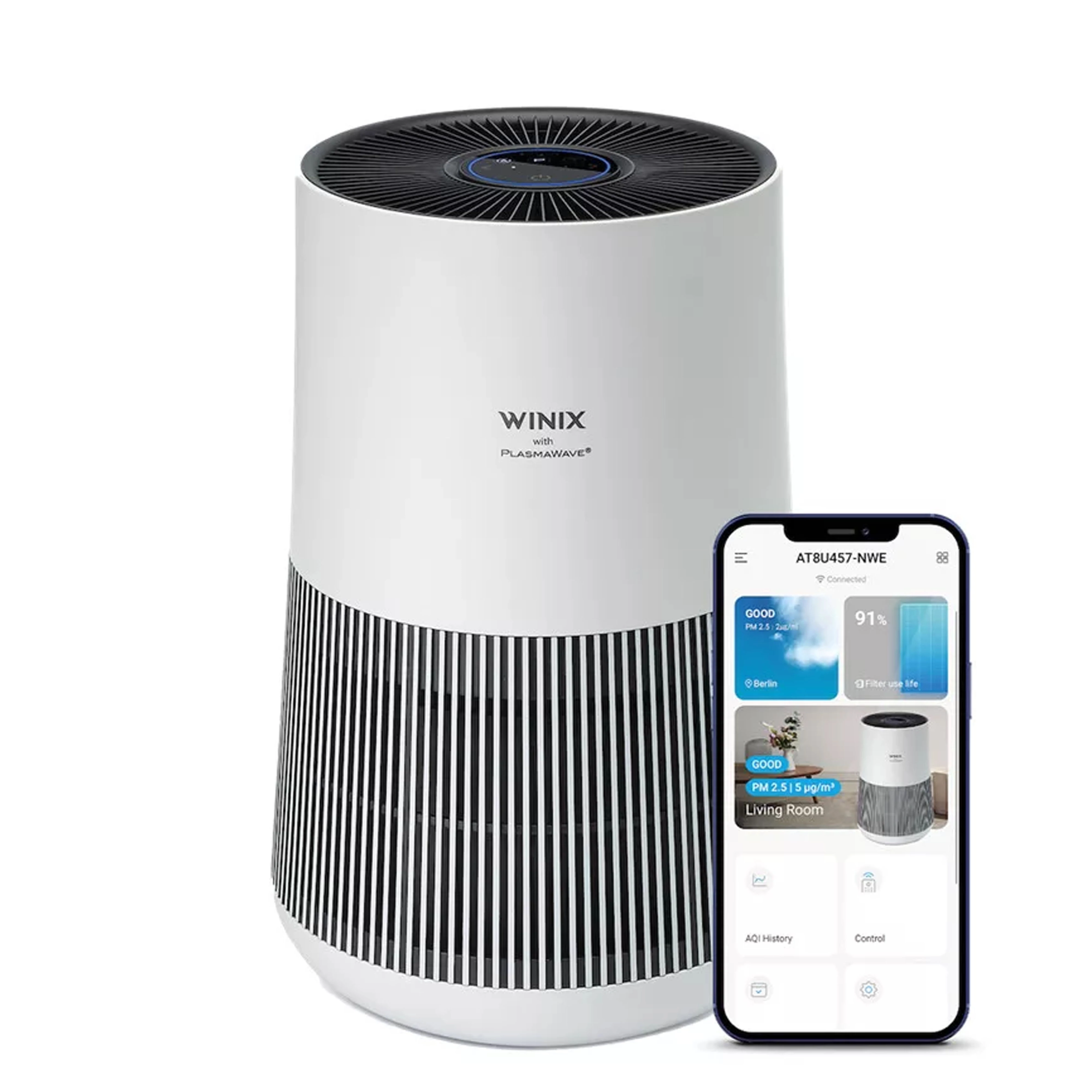 Termék jellemzői: - 360o-os levegőbeszívás, nagy felületű TrueHEPA szűrő - Maximum helyiségméret: 50 m2 - Levegőszennyezettség érzékelő (por) - 4 lépcsős levegőtisztítás: MESH előszűrő a porrészecskéknek, szénszűrő, 99.97%-os TrueHEPA szűrő és WINIX PlasmaWave® levegőtisztítási technológia - Vizuális levegőminőség kijelző (3 színnel jelzi a levegő minőségét: kék, borostyán, piros) - Automatikus mód (az aktuális levegőszennyezettséghez igazítja a működés intenzitását) - Éjszakai mód (halvány fények, csendes működés) - Intenzitás fokozatok: 4 (éjszakai - alacsony - közepes - magas) - Szűrőcsere szükségességének kijelzése - a készülék 4 lépcsős légtisztítási mechanizmussal rendelkezik, melynek elemei a finom MESH előszűrő, szénszűrő, 99,97%-os hatékonyságú TrueHEPA szűrő - mindezt kiegészíti az egyedülálló Winix PlasmaWave technológia Hydroxyl kibocsátással, ami hozzájárul a vírusok és gázok semlegesítéséhez - a készülék kialakításának, kompakt méretének és kis súlyának köszönhetően bármikor könnyedén áthelyezhető, másik helyiségbe vihető - a készüléke wifire csatlakoztatva Winix smart applikáció segítségével távolról is vezényelhető - kövesse nyomon a levegő minőség alakulását, és teremtsen ideális körülményeket, mire hazaér - a WINIX T500 légtisztító készülék hatékonyan távolítja el otthonunk levegőjéből az aprószemcséjű porrészecskéket és szennyezőanyagokat (PM 2,5), beleértve a penészspórákat, a szagokat közvetítő apró részecskéket, illékony szerves vegyületeket, pollent, port, továbbá az állati bőr- és szőr darabkákat, valamint a baktériumok és kórokozók nagy részét - a készülék hatékonysága komoly teszteken esett át (RoHS, WEE, ECARF, UK Allergy), így egészen biztos lehet benne, hogy a Winix T500 használatával a beltéri levegő minősége nagy mértékben javul - éjjel az éjszakai mód segítségével biztosíthatja a kiváló levegőminőséget, miközben az alvása is zavartalan lehet - nappal pedig az automatikus üzemmód van ebben segítségére, mely folyamatosan érzékeli a levegő aktuális összetételét és minőségét, a légtisztítás intenzitását pedig ehhez igazítja Műszaki adatok: - Javasolt maximális helyiségméret: 50 m2 - Szűrési technika: 4 lépcsős - CADR átlagérték: max. 250 m3/óra - Szűrőcsere szükségességének automatikus kijelzése - Feszültség: 220-240 V (50/60 Hz) - Áramfogyasztás: 12-55 W - Zajszint: 26,5-53,7 dB (működési módtól függően) - űködési módok: 3 különböző mód: automatikus - kézi beállítású - éjszakai üzemmód - A készülék mérete: 24,1 x 24,1 x 37 cm - Súly: 3,1 kg